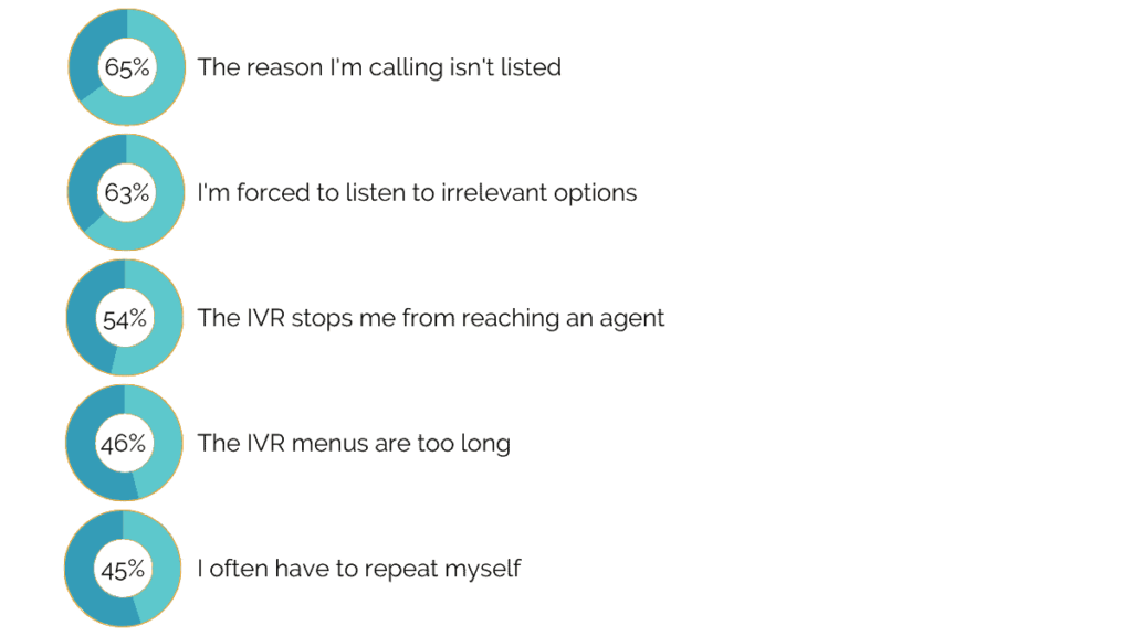 When not done correctly, 61% of consumers feel that reaching IVRs actually makes for a poor experience. IVRs can sometimes fail to guide the customer correctly if mismanaged. When your IVR is ineffective, you’ll need to take a look at your call flow. Ideally, IVR menus need to be clear and concise so that the customer reaches the correct location without extended hold times. When hold times are excessive, or menus are confusing, callers hang up without a resolution. This requires them to call again at another time, or simply not get their issue resolved. If the menu is simplified, agents will be available at the end of each menu chain, and less misrouted calls will result.