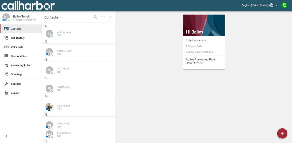 By using a web softphone, employees don’t have to be tied to their desk or cubicle to utilize their work phone number or all the other great VoIP phone system features. Web softphones are a great feature to utilize for flexible or remote workers. The features within the web softphone in the CallHarbor portal are helpful to office workers and remote workers alike. You can start new phone calls right from the web softphone, begin new chat or SMS conversations with your coworkers, see your coworkers’ availability statuses, view your settings and toggle answering rules and greetings, and even more.